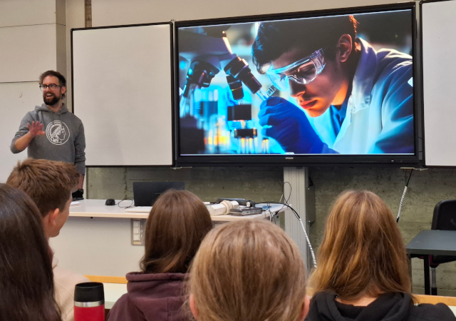 Dann hatten die Schülerinnen und Schüler die Möglichkeit, das Mikroskop selbst zu bedienen und verschiedene Bereiche der Zecke, wie beispielsweise die Mundwerkzeuge, genauer zu untersuchen. Dadurch konnten sie die hohe Vergrößerung und Auflösung des Mikroskops direkt erfahren und somit einen Einblick in moderne Forschungsmethoden bekommen sowie darüber hinaus natürlich auch etwas über den Aufbau einer Zecke lernen.