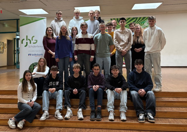 Die Schülerfirma besteht aus einem coolen und bunt gemischten Team der Jahrgänge 9 und 10, also ein jahrgangsübergreifender Politik- und Wirtschaftskurs.