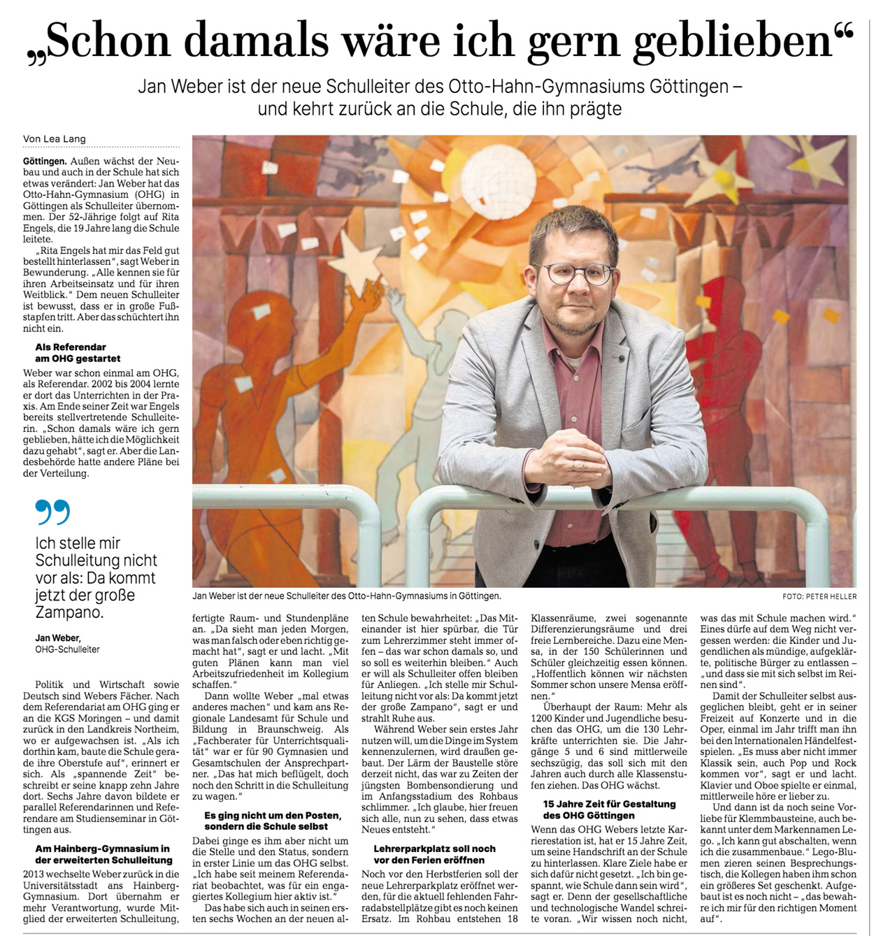 Das GT berichtet in seiner Ausgabe vom 17.09.2025 über unseren neuen Schulleiter