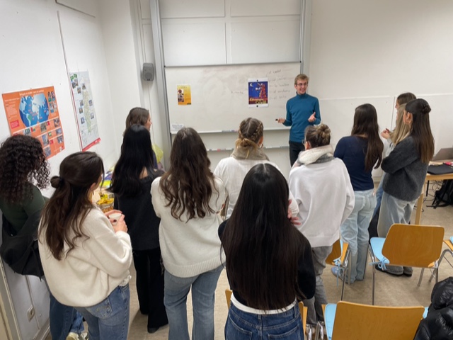 (rei.) Der Spanisch eA von Frau Reitzenstein hat am Donnerstag eine Exkursion in die Romanistik gemacht. Im Rahmen des Cinefórums sind wir der freundlichen Einladung unseres ehemaligen Praktikanten Ben Paul Rother gefolgt. Von ihm, Sophie Uhlendorf und dem Dozenten Jaime Cárdenas Isasi wurden wir herzlich empfangen. Zuerst erhielten wir eine Führung durch das Gebäude der Romanistik, der Bibliothek und des Kulturwissenschaftlichen Zentrums. Anschließend fand eine inhaltliche und sprachliche Vorententlastung des kolumbianischen Films „La estrategia del caracol“ statt. Der Film passte hervorragend zum Zentralabiturthema des 1. Semesters, so konnten die SchülerInnen auch auf ihr Vorwissen zurückgreifen. Die anschließende Diskussionsrunde mit hauptsächlich muttersprachlichen Studierenden rundete den gelungenen spanischsprachigen Abend ab. Es gab Snacks und Getränke für alle. Ein bereichernder Ausflug und eine schöne Gelegenheit mal etwas universitäre Luft zu schnuppern.