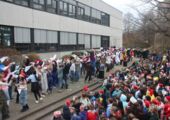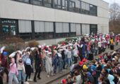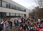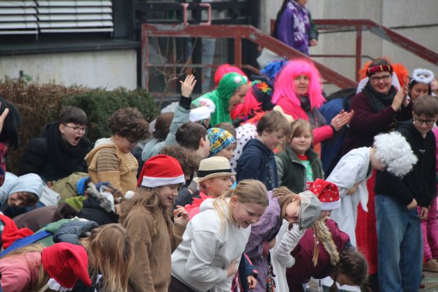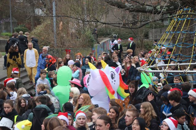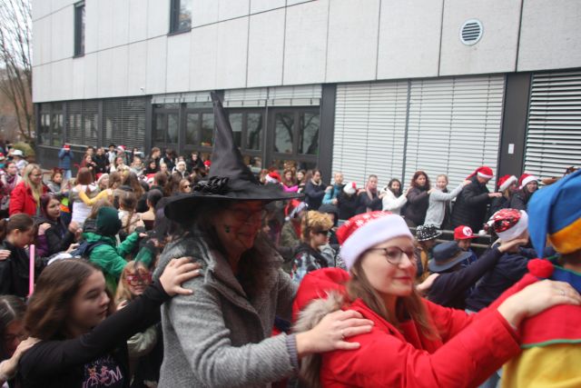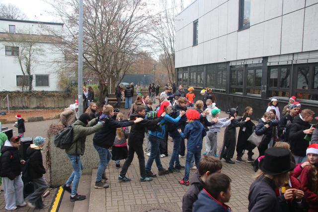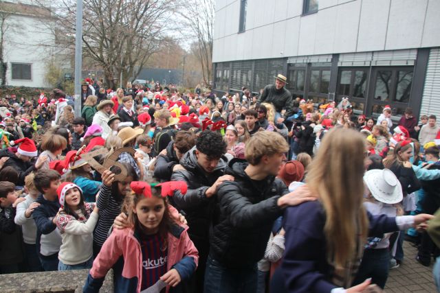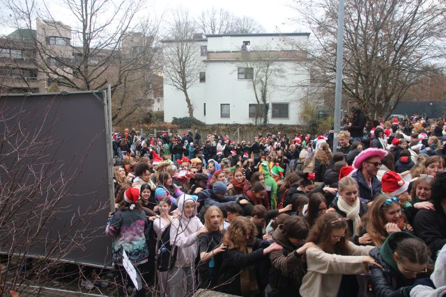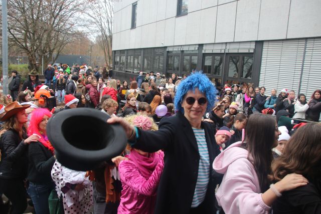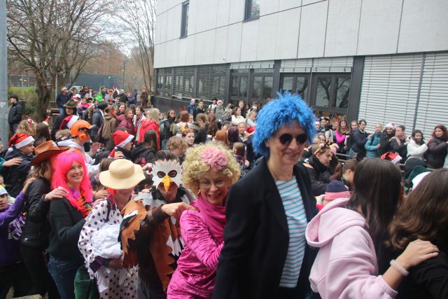 Den glanzvollen Abschluss und Höhepunkt war die gemeinsame Polonaise - zugegeben waren es einige Polonaisen - aus rund 1000 Schülerinnen, die gemeinsam Friedhelm Döring ins Lehrerzimmer brachten.