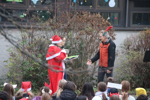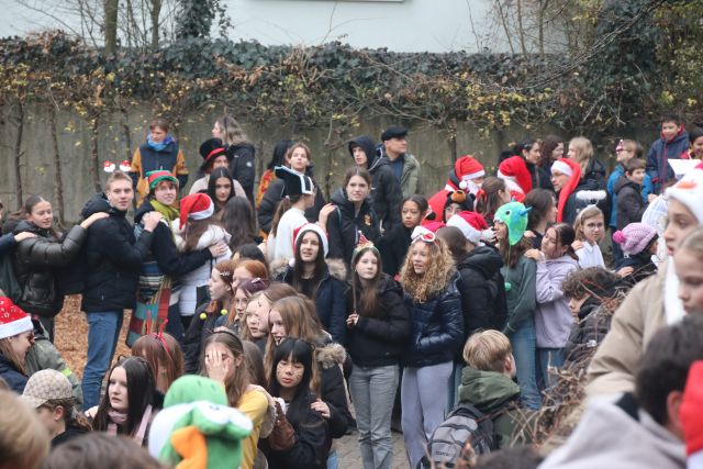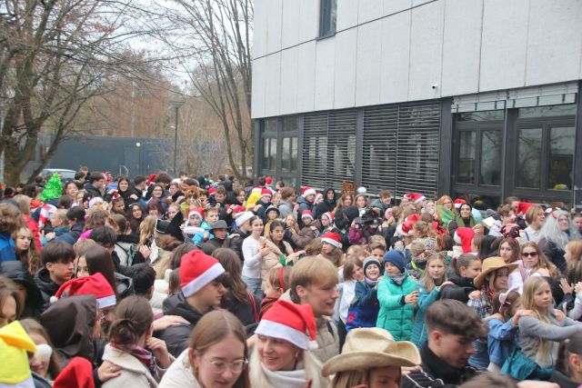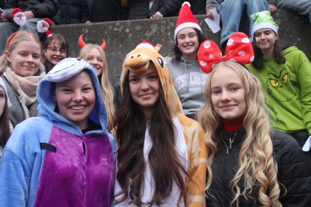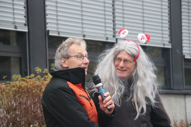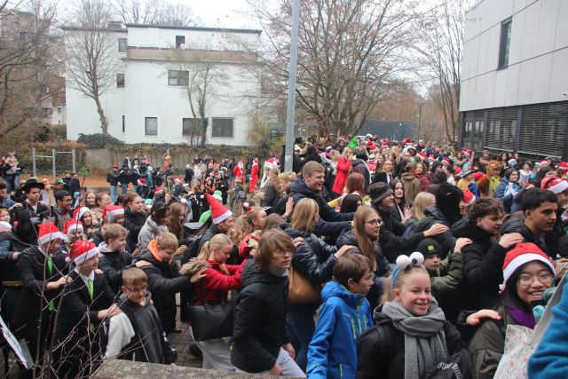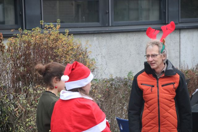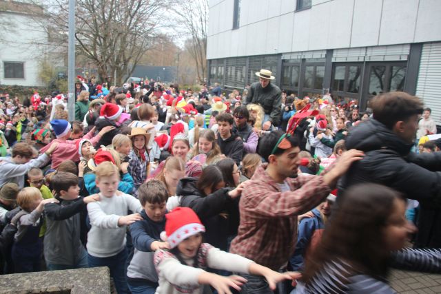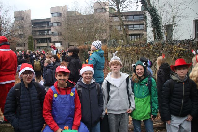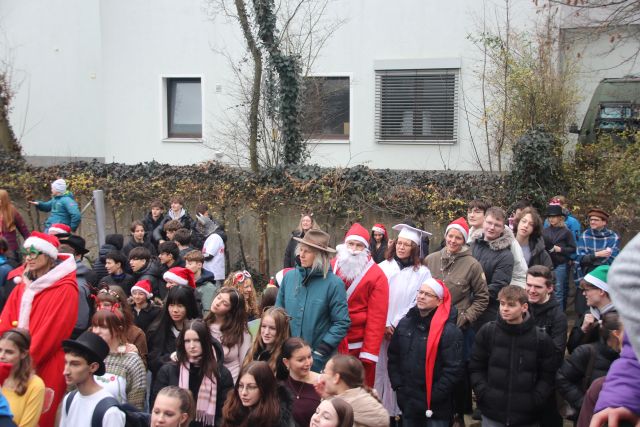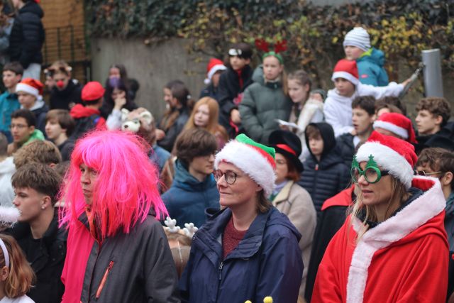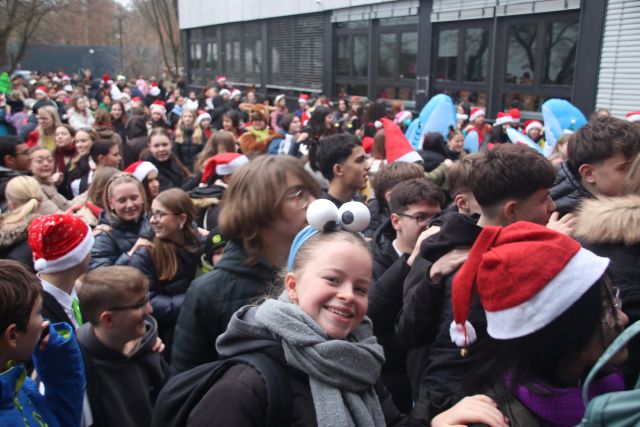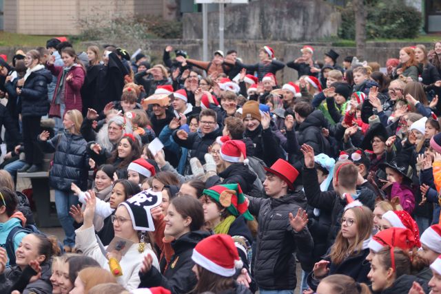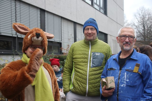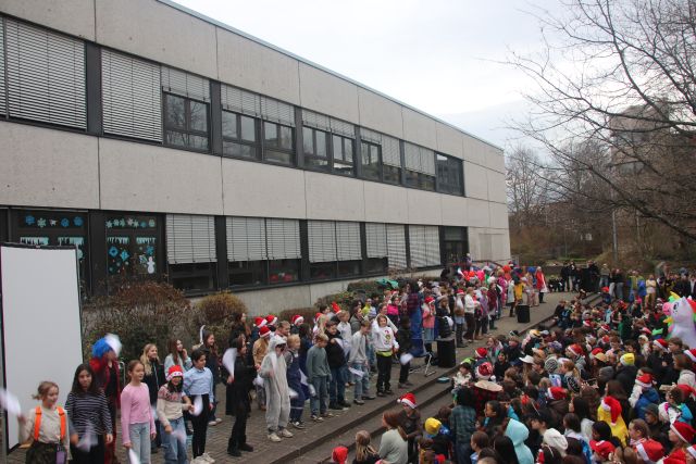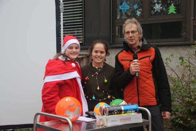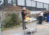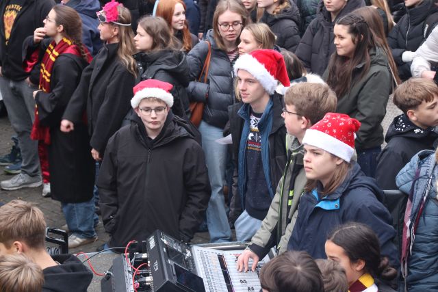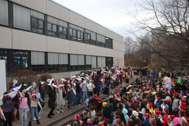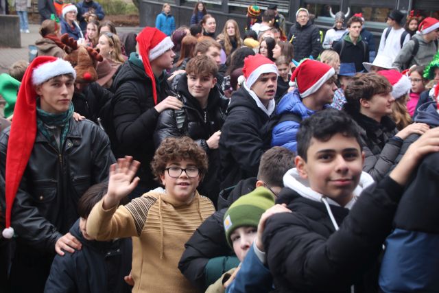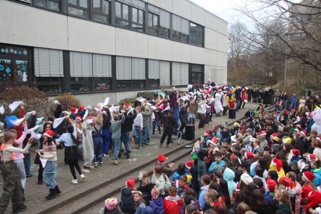Auf dem Südhof ging es dann rund: Nach dem Zünden von Wasserstoffballons und dem gemeinsamen Rufen "Friedhelm! Du bist der Beste!" ließen wir mit musikalischen und tänzerischen Darbietungen den Pausenhof beben. Die Hauptperson verteilte dabei seine vielen Aufgaben nun an andere Mitglieder der Schulgemeinschaft: Ob Kekse beim Abholen der Klassenbücher, Unterstützungszettel für die Abiturient*innen und natürlich die Spiele-Ausgabe - Friedhelm Döring stellte sicher, dass diese Jobs nun auch weiter geführt werden!
