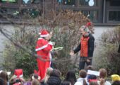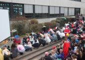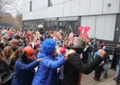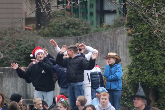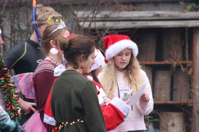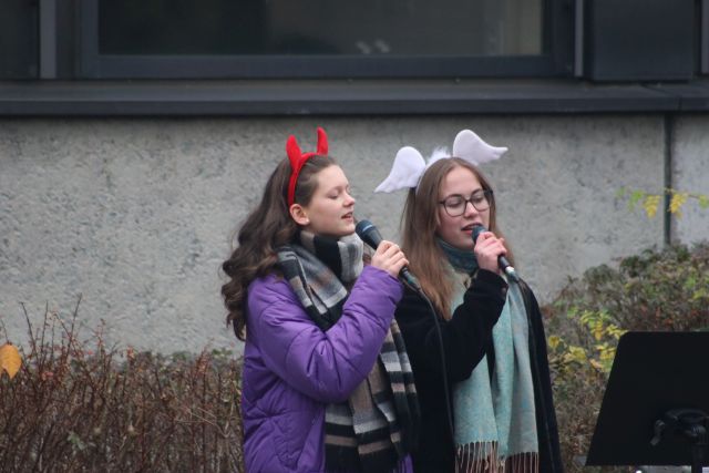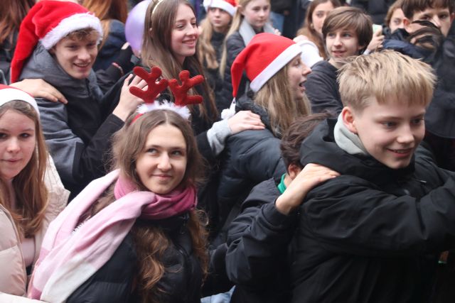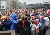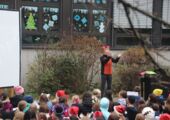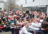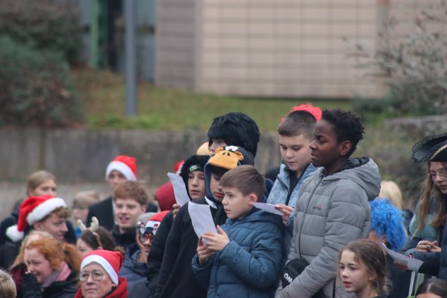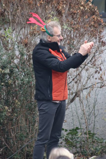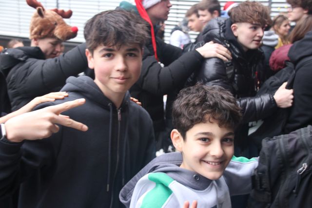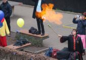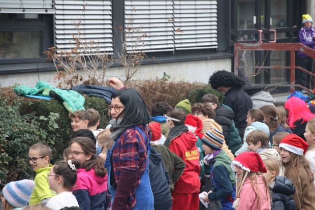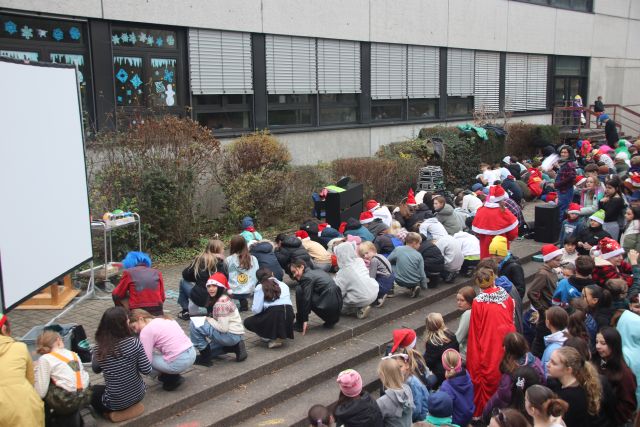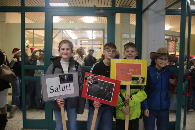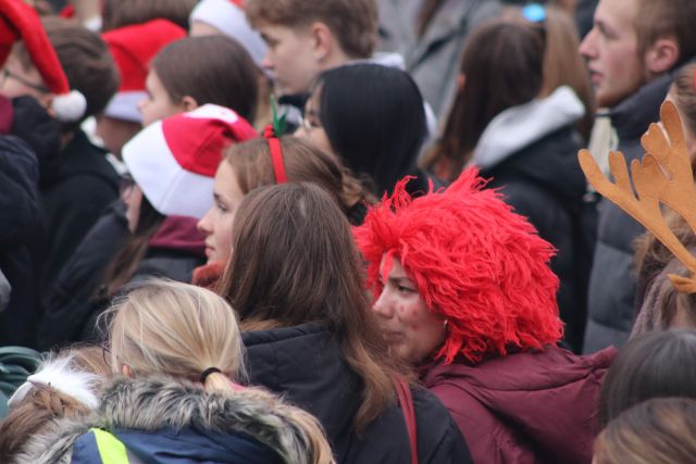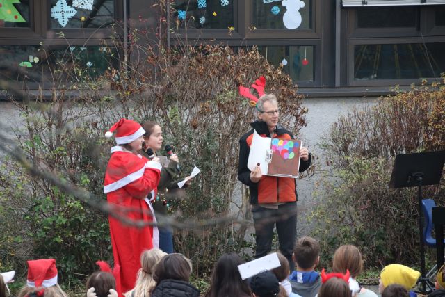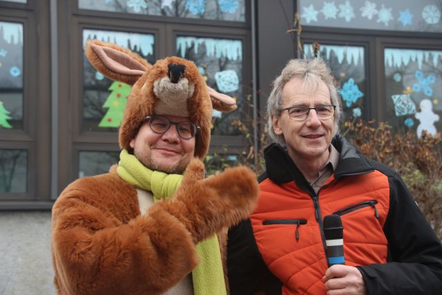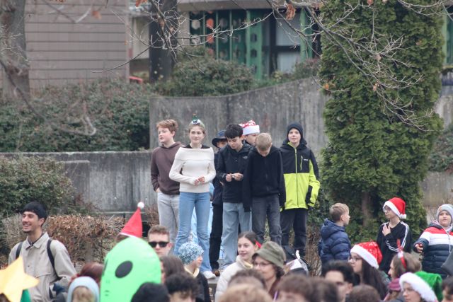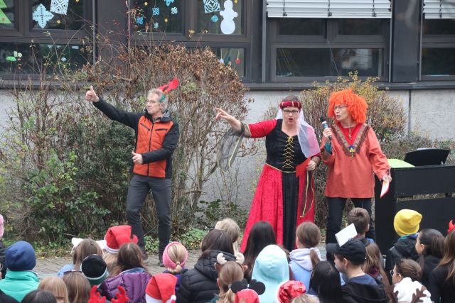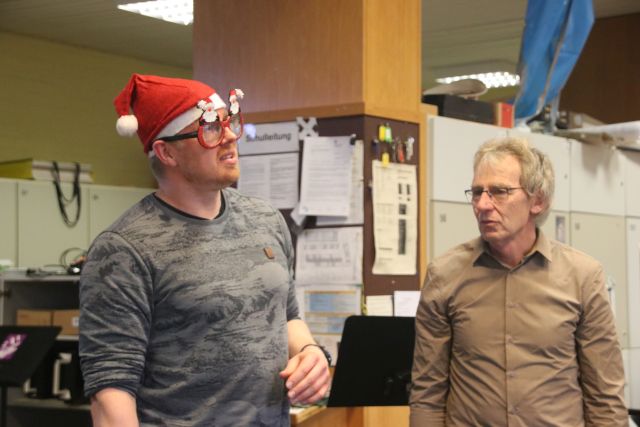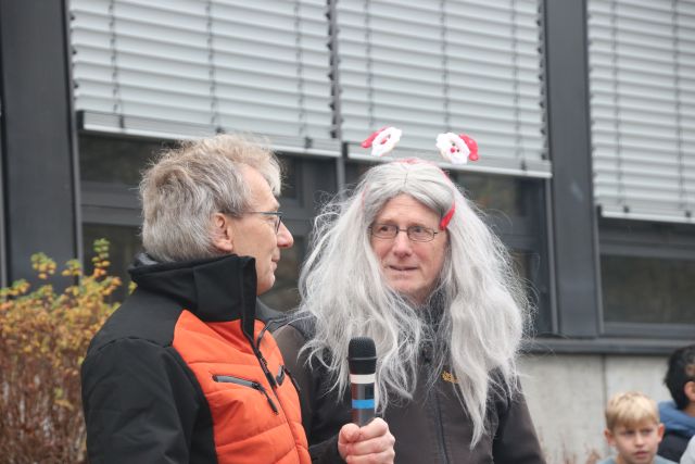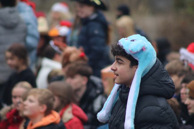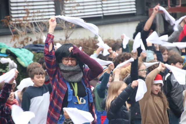 Auf dem Südhof ging es dann rund: Nach dem Zünden von Wasserstoffballons und dem gemeinsamen Rufen "Friedhelm! Du bist der Beste!" ließen wir mit musikalischen und tänzerischen Darbietungen den Pausenhof beben. Die Hauptperson verteilte dabei seine vielen Aufgaben nun an andere Mitglieder der Schulgemeinschaft: Ob Kekse beim Abholen der Klassenbücher, Unterstützungszettel für die Abiturient*innen und natürlich die Spiele-Ausgabe - Friedhelm Döring stellte sicher, dass diese Jobs nun auch weiter geführt werden!