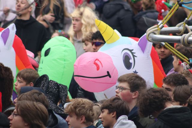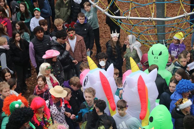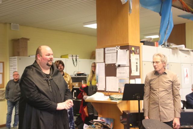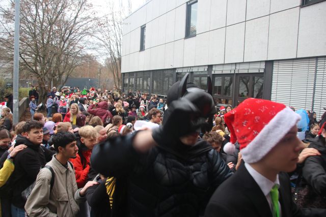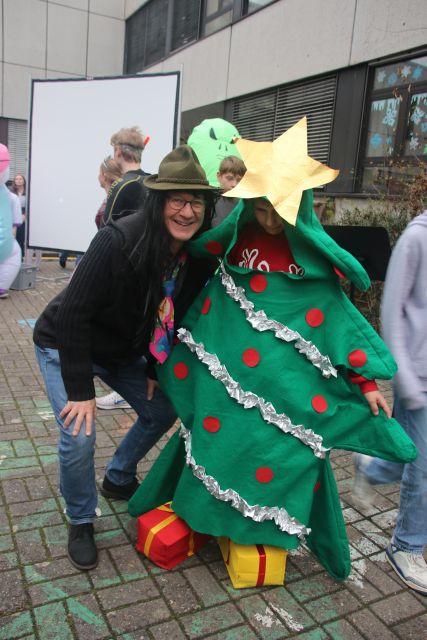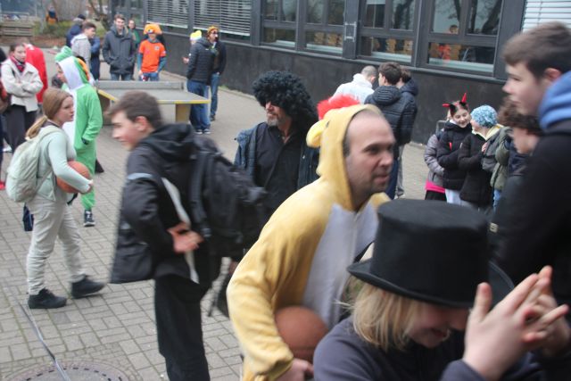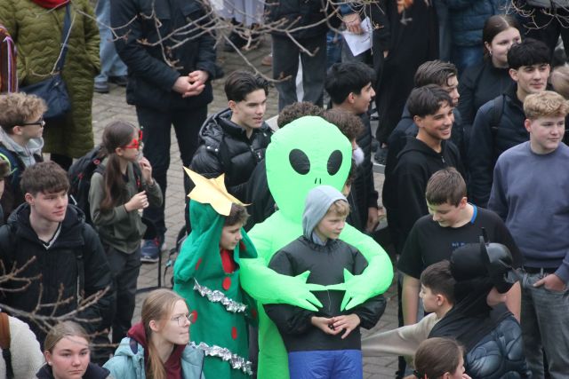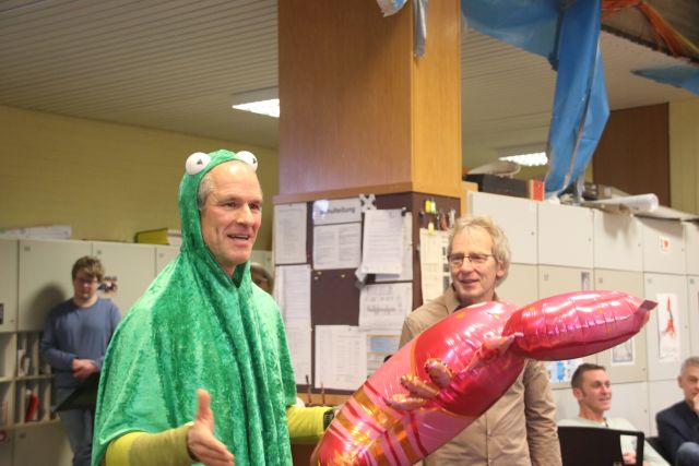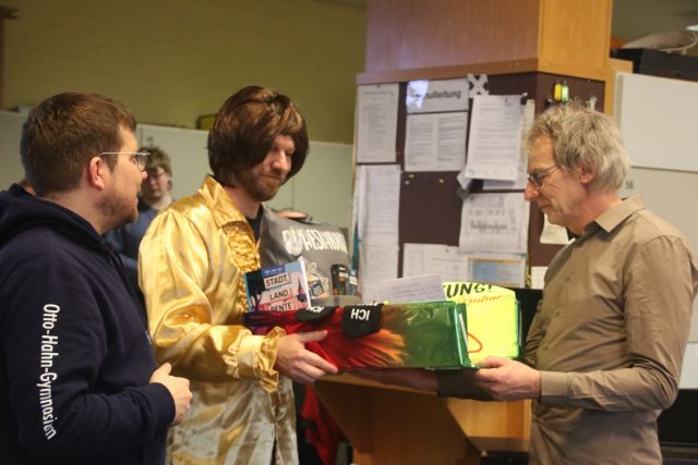 (sth.) Auch der beste Hausmeister der Welt möchte einmal in den Ruhestand gehen - und heute war es soweit: Friedhelm Döring wurde mit einer riesigen Würdigung für seine Arbeit am OHG von der Schulgemeinschaft verabschiedet! Wie viel mehr Friedhelm Döring als einfach nur ein Hausmeister für uns war, versuchten die Schülerinnen und Schüler und natürlich auch die Lehrkräfte damit auszudrücken, dass fast alle zumindest ein kleines Kostüm anhatten. Schließlich ist er für sein fantasievolles Verkleiden bekannt.