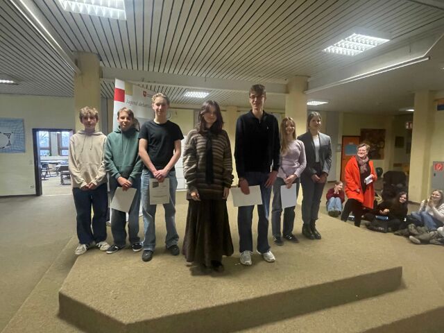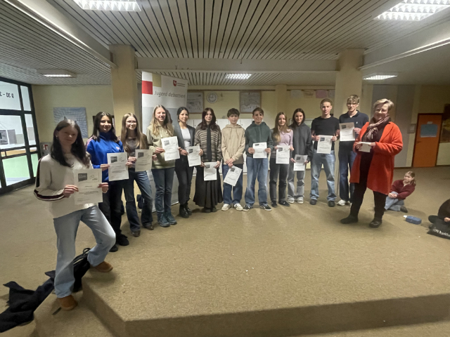 (fah.) Debattieren ist das Gegenteil von Schwatzbude. Das haben die diesjährigen Teilnehmerinnen und Teilnehmer des Schulwettbewerbs Jugend debattiert vergangene Woche wieder unter Beweis gestellt: Soll eine allgemeine Dienstpflicht für junge Menschen eingeführt werden? Soll es einen Schüleraustausch zwischen neuen und alten Bundesländern geben? Die beiden Streitfragen wurden anschaulich, kenntnisreich und überzeugend debattiert. Wir gratulieren allen zu dieser großartigen Leistung, die sehr viel zusätzliche Zeit und Kraft in den letzten Wochen gekostet hat. Ganz besonders herzlich gratulieren wir den beiden Siegern Tim Zeh (9B) und Daria Krempasky (9A), die das OHG im Januar beim Regionalentscheid am FKG vertreten werden. Juli Ischebeck, Joschka Sauer und Pia Hassan Sanchez belegten die nächsten Plätze, bleiben als Nachrücker und Coaches im Trainingsteam. Am Debatten-Ball bleiben hoffentlich auch Johanna Brandt, Helena Ditte, Chiara Hillebrecht, Johanna Kähm, Hedi Kloska, Simon Lutz und Jonas Östereich, die alle mit ihren engagierten und soliden Beiträgen zum Gelingen der 4er-Runden beigetragen haben.