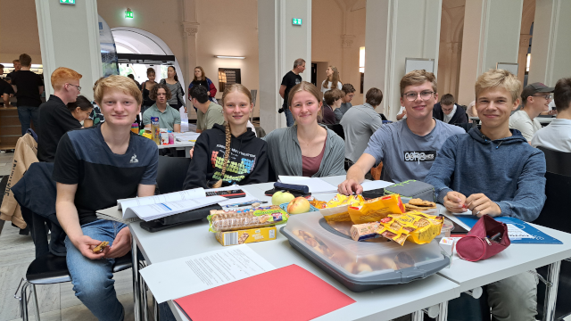 Dabei hatten wir insbesondere daran Spaß, uns gemeinsam an knifflige Aufgaben zu setzen, Lösungen und Lösungswege zu diskutieren und für unterschiedliche Herausforderungen auch Leute mit unterschiedlichen Stärken bei uns in der Gruppe zu haben. Unser Team bestand aus Tom, Lien, Arthur, Anna und Lutz aus den Matheleistungskursen des 13. Jahrgangs und wurde von Herrn Clemens begleitet und unterstützt.