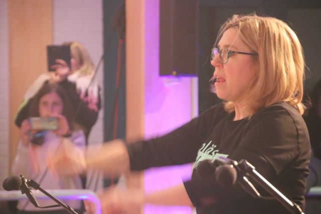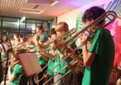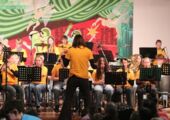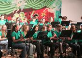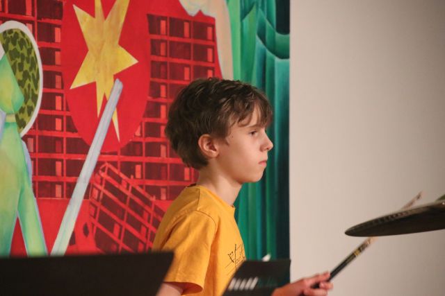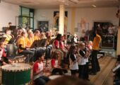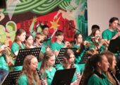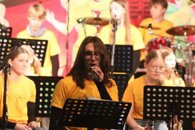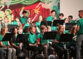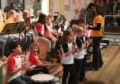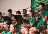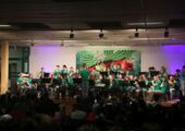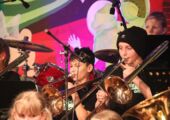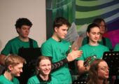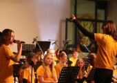 Eine Darbietung der besonderen Art konnten das Publikum bei der anschließenden Show des Anfängerensembles „Young Spirit“ erleben. Der energiegeladene Marc Häßner hatte neben seinen regulären Musiker*innen noch zahlreiche Grundschulkinder der Egelsbergschule im Gepäck, die u.a. ein beeindruckendes Trommel-Gesangsstück präsentierten.