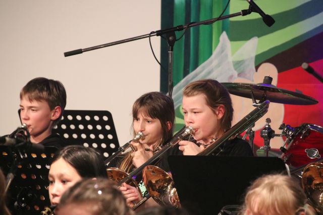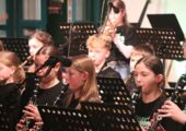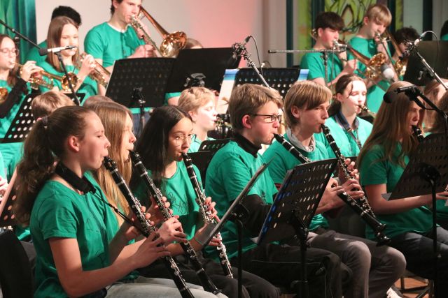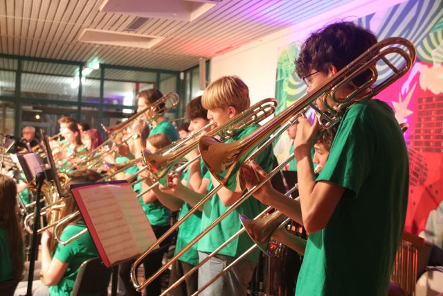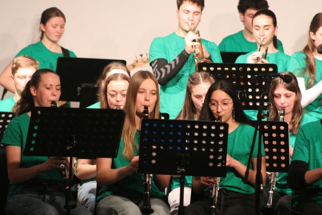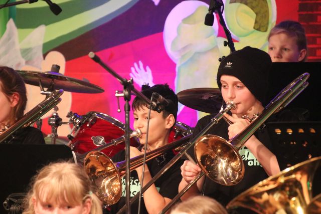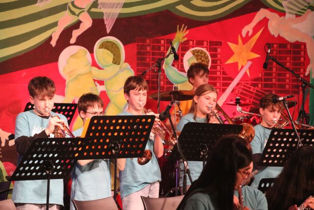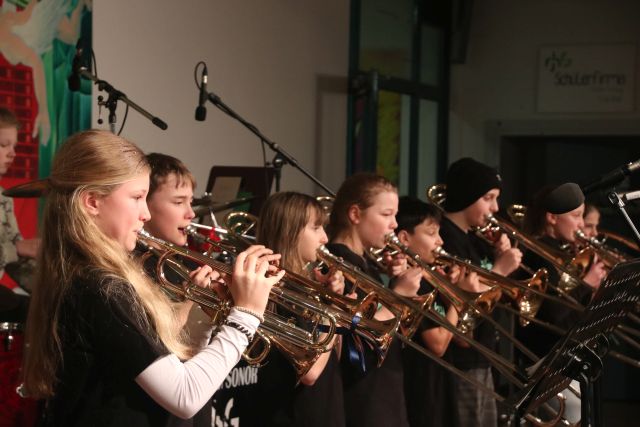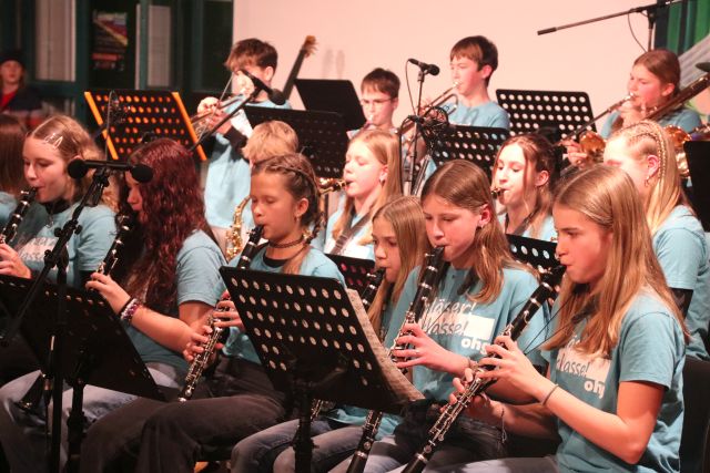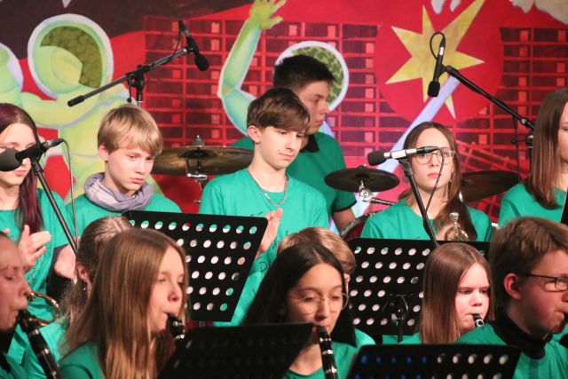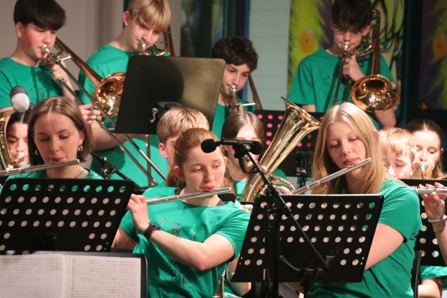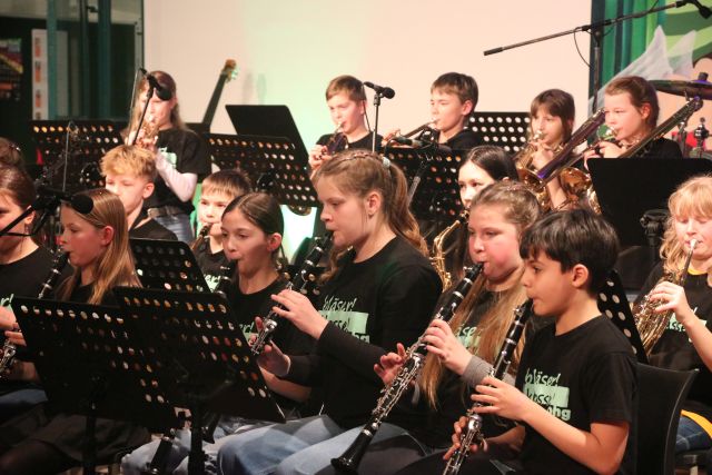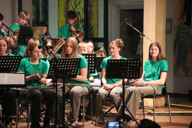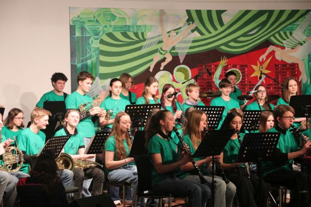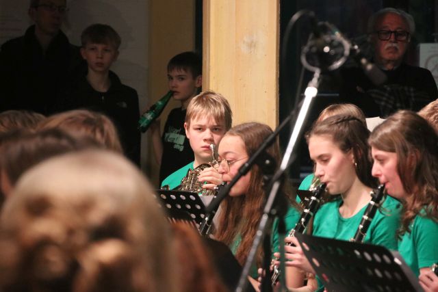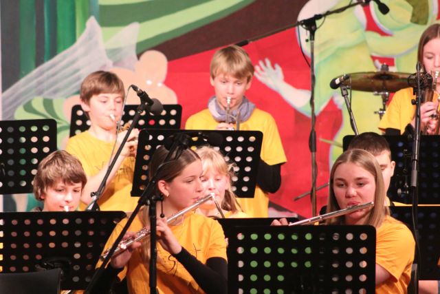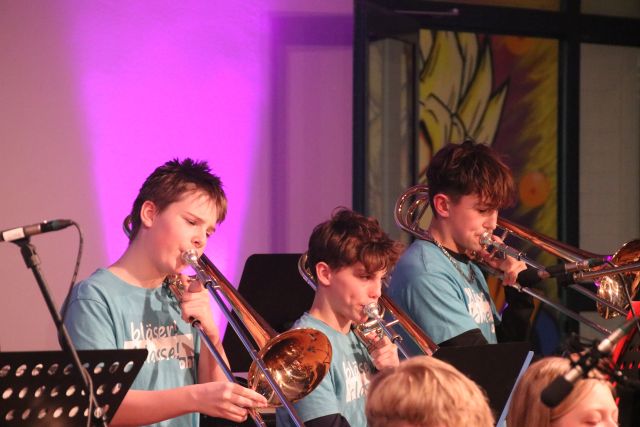 Welche Fortschritte in recht kurzer Zeit möglich sind, zeigte im Anschluss daran die Klasse 6B. Diese präsentierte unter der Leitung von Frau Lüdecke ein rundum überzeugendes Programm mit Stücken wie "Fluch der Karibik" und "Mary Poppins". Dabei zeigten sich die jungen Musiker und Musikerinnen sehr intonationssicher und meisterten auch technisch schwierige Stellen mit Leichtigkeit.