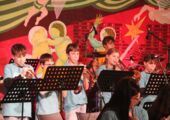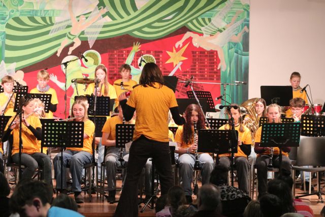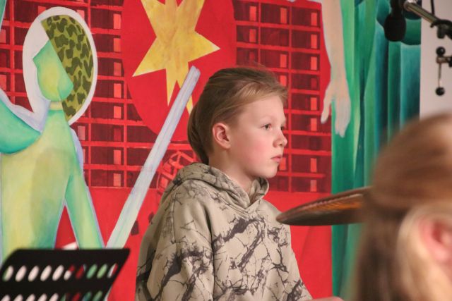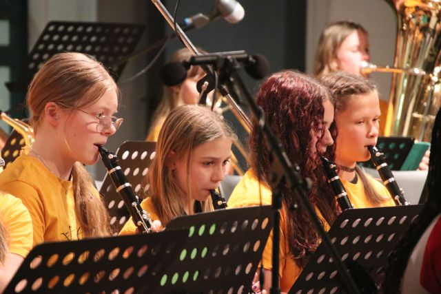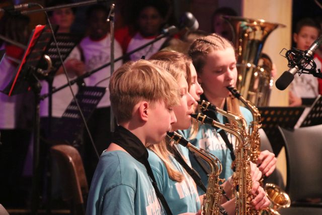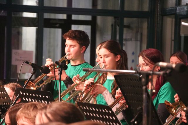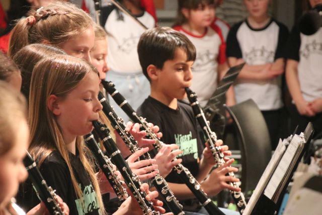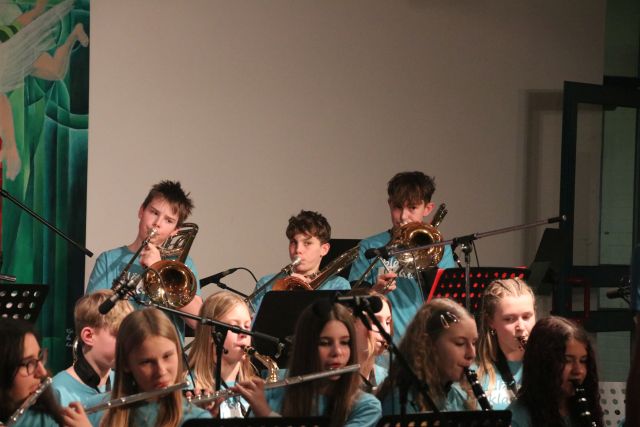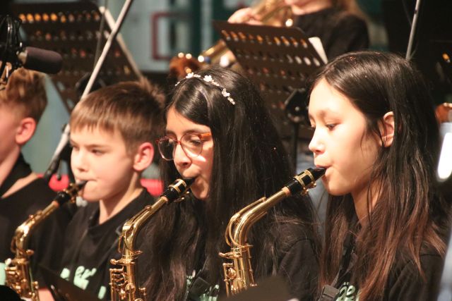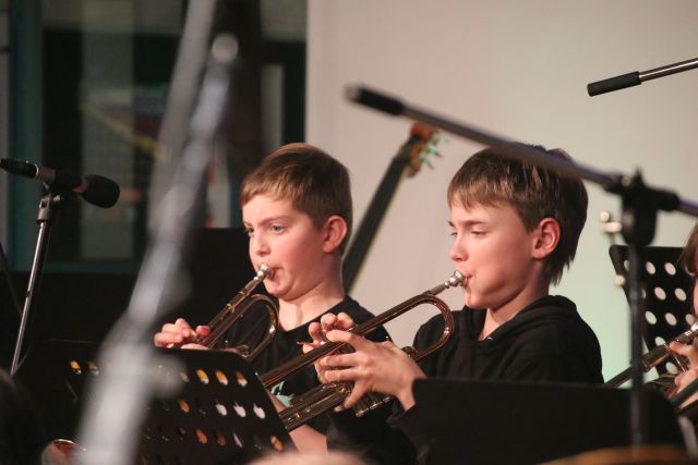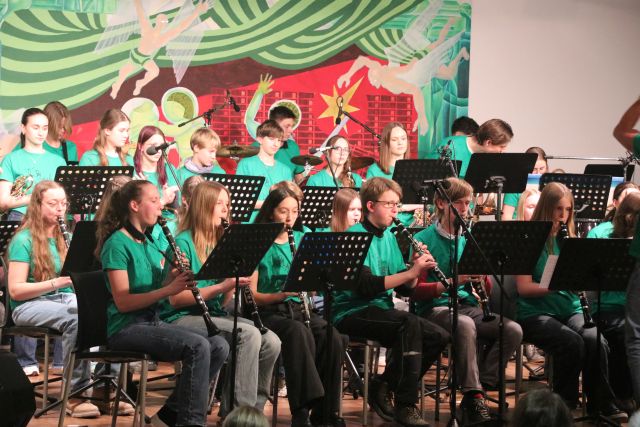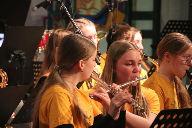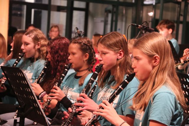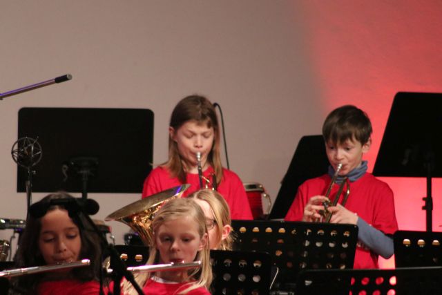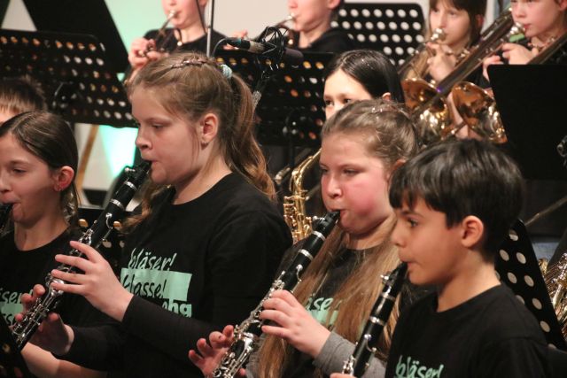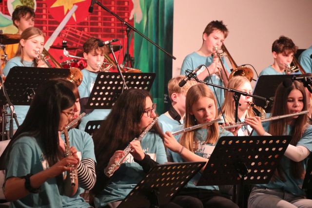 Welche Fortschritte in recht kurzer Zeit möglich sind, zeigte im Anschluss daran die Klasse 6B. Diese präsentierte unter der Leitung von Frau Lüdecke ein rundum überzeugendes Programm mit Stücken wie "Fluch der Karibik" und "Mary Poppins". Dabei zeigten sich die jungen Musiker und Musikerinnen sehr intonationssicher und meisterten auch technisch schwierige Stellen mit Leichtigkeit.