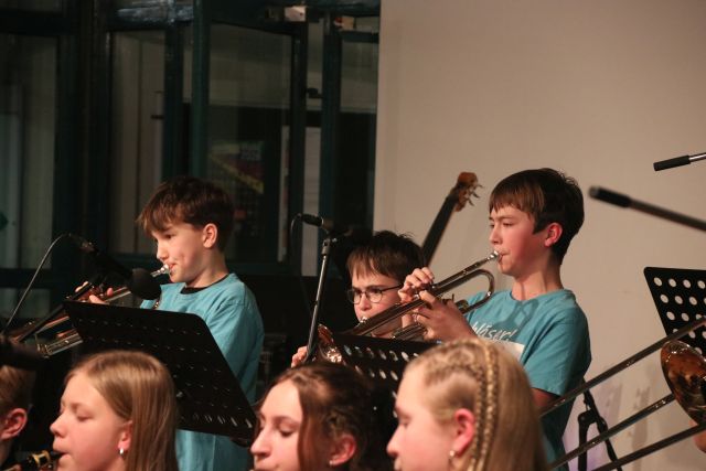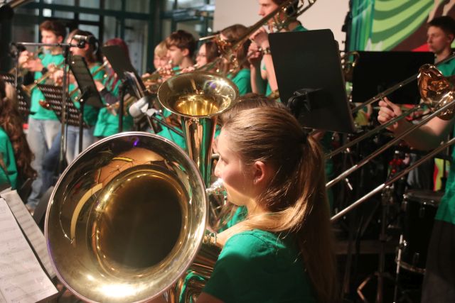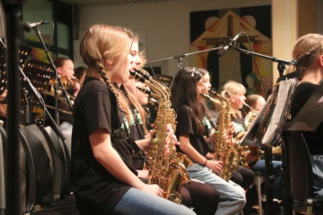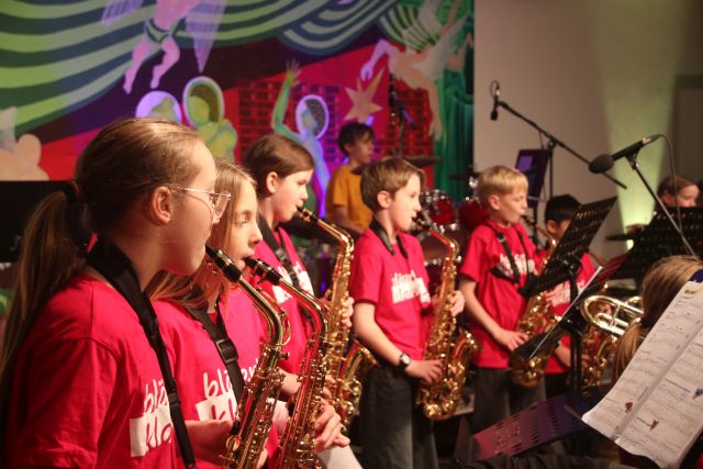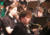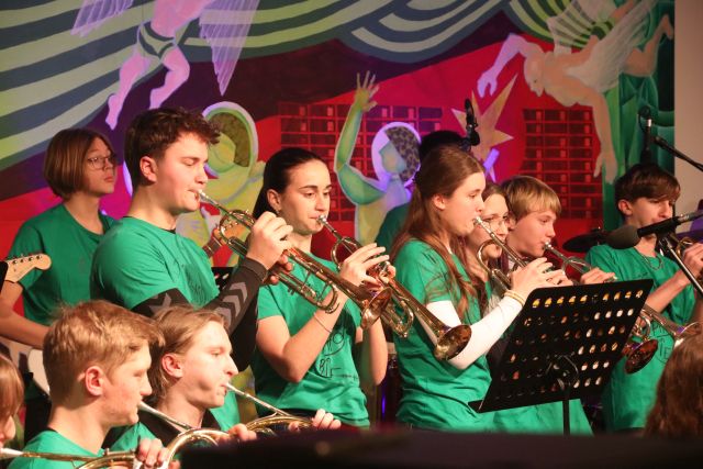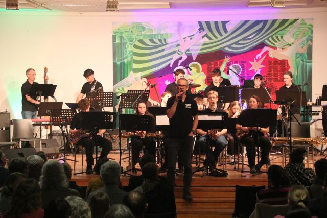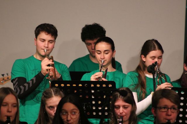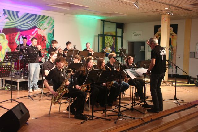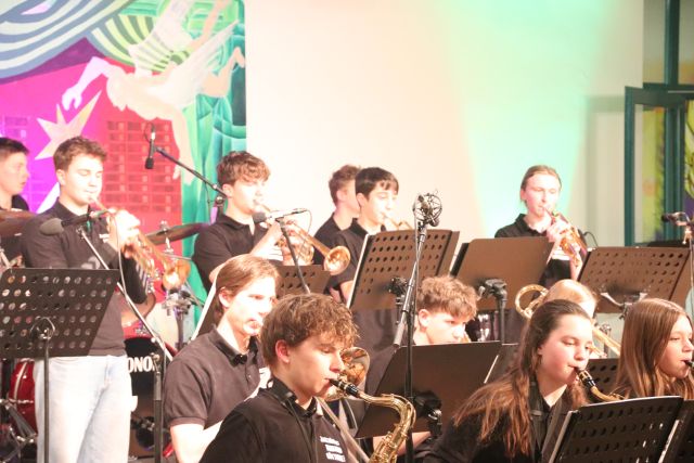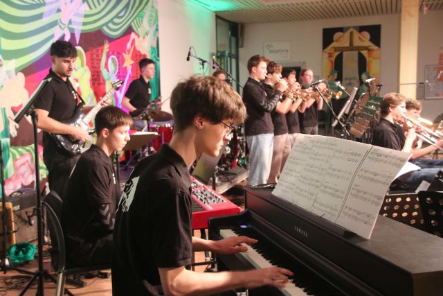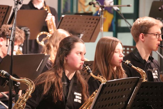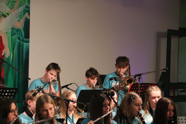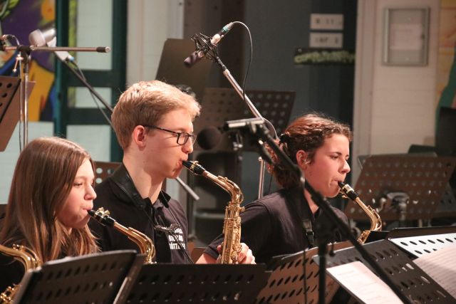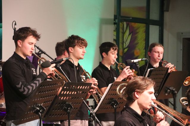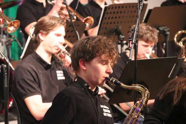 Den Abschluss der Veranstaltung machten dann die zwei Ensembles, welche die erfahrensten Musiker*innen in ihren Reihen haben: das Bläserensembles "Blasphobie" und die Bigband „Jazzaholics“. Bei beiden Ensembles wussten insbesondere die Solisten zu überzeugen. Hervorzuheben sind aus der "Blasphobie" das faszinierende Solo von Hanno Frost an der Gitarre sowie auf Seiten der Bigband die solistischen Beiträge von Daria Körner und Benedikt Busch (beide Altsaxophon) sowie Leander Fink (Keyboard).