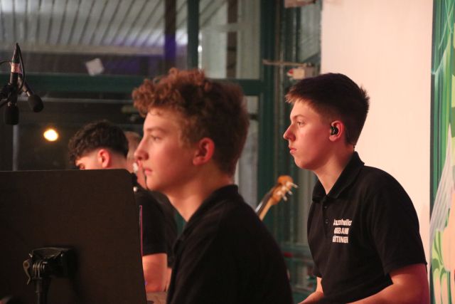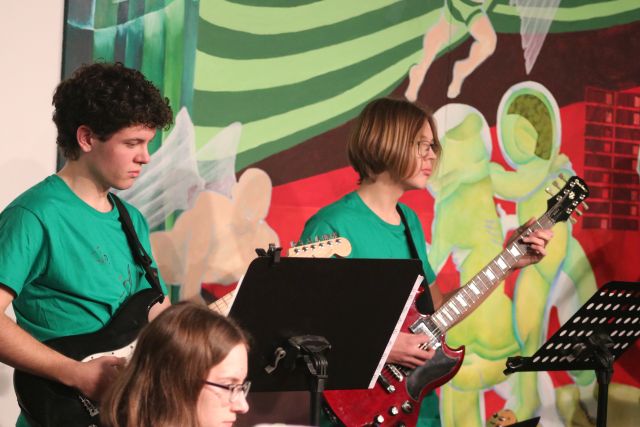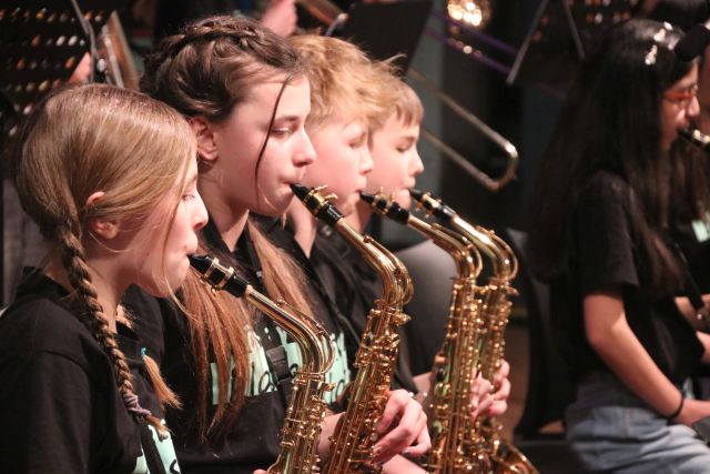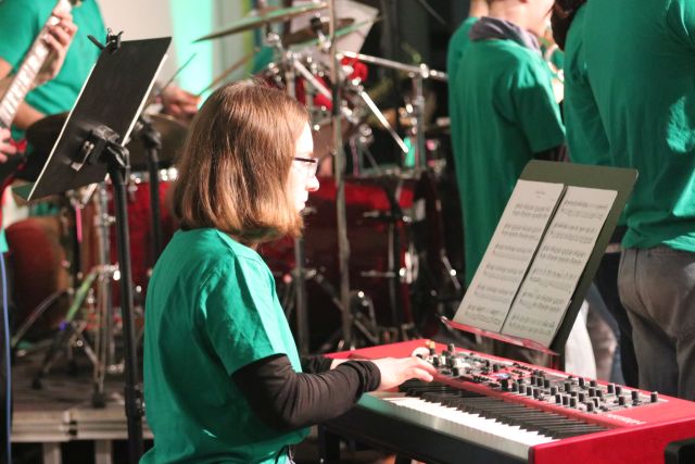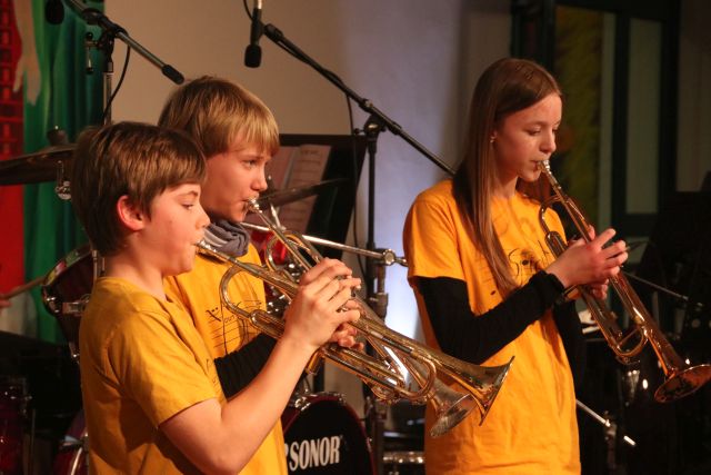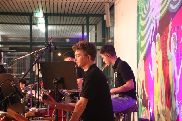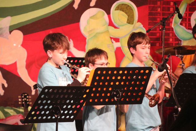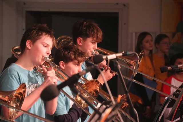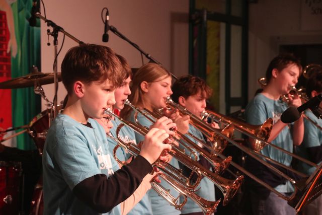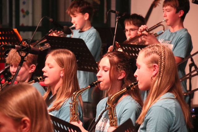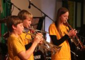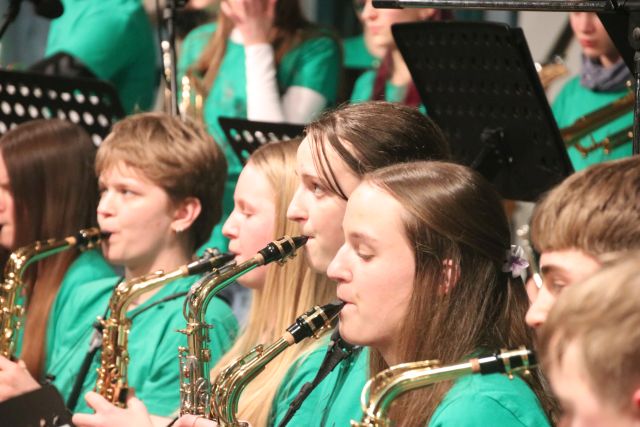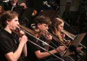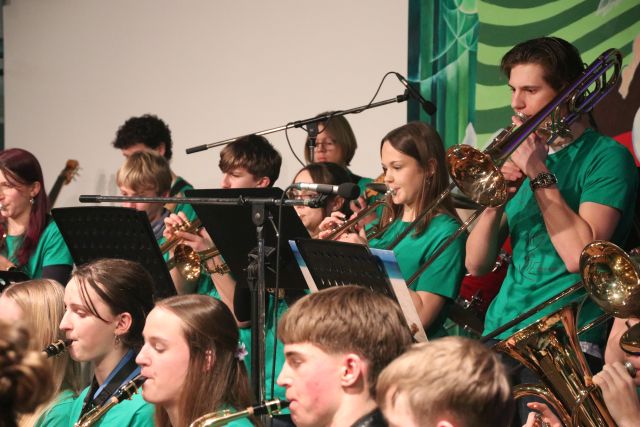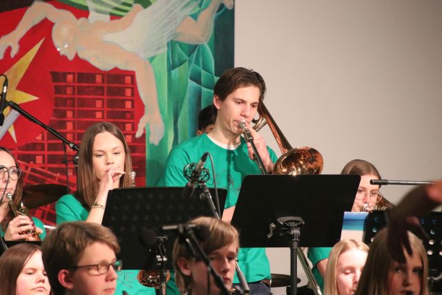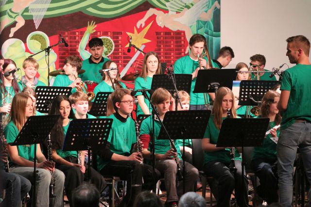 Den Abschluss der Veranstaltung machten dann die zwei Ensembles, welche die erfahrensten Musiker*innen in ihren Reihen haben: das Bläserensembles "Blasphobie" und die Bigband „Jazzaholics“. Bei beiden Ensembles wussten insbesondere die Solisten zu überzeugen. Hervorzuheben sind aus der "Blasphobie" das faszinierende Solo von Hanno Frost an der Gitarre sowie auf Seiten der Bigband die solistischen Beiträge von Daria Körner und Benedikt Busch (beide Altsaxophon) sowie Leander Fink (Keyboard).