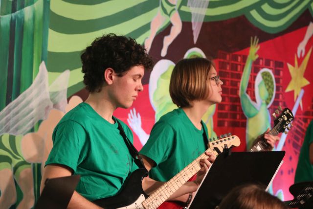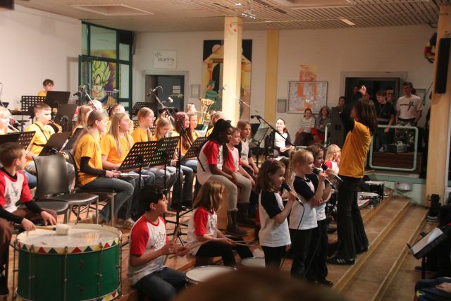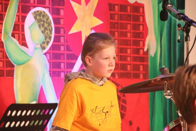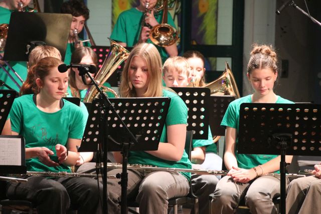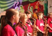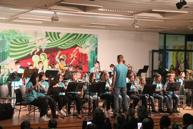 Famos waren auch die Beiträge der 7B unter Leitung von Herrn Eismann. Hits wie "Starwars" und "Shotgun" ließen die Herzen der anwesenden "Fans" höher schlagen. Erstaunlich ist bei der Performance dieser Klasse, wie weit fortgeschritten die Schüler und Schülerinnen in der Interpretation der Stücke schon sind.