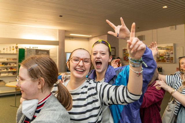 Der Herbst war geprägt von Unterwegssein und Wettbewerb. Klassenfahrten führten die Fünftklässler zum Kennenlernen, die zehnten Klassen in verschiedene Regionen Deutschlands, die Tutorials der Q2 ins europäische Ausland. Der Lateinkurs reiste nach Trier, eine Gruppe des neunten Jahrgangs nach Gloucester zur Partnerschule. Sportlich wurde es beim Obstacle Cycle Run, beim Streethandball-Turnier im Maschpark, bei „Jugend trainiert für Olympia“. Auch Worte hatten ihren Platz – bei „Jugend debattiert“ und dem Vorlesewettbewerb. Währenddessen übernahm der Abiturjahrgang 2026 Verantwortung und Kreativität, etwa mit einem Bingo-Abend, um den eigenen Abiball zu finanzieren.