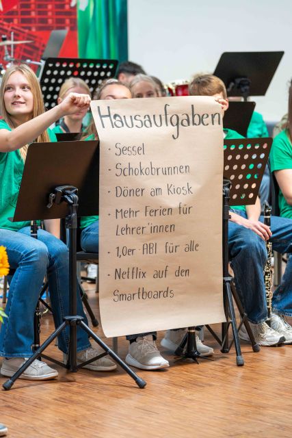 Die Wochen vor den Sommerferien fühlten sich wie ein verdichtetes Schuljahr im Kleinen an. Gleich drei Sommer Konzerte füllten die obere Pausenhalle, die S-Arena und den Südhof. Parallel dazu standen die Abiturfeierlichkeiten an: Abischerz, Abigottesdienst, Entlassung und schließlich der Abiturball, bei dem 126 Schüler verabschiedet wurden. Ein besonderer Moment – auch weil der Abiturball 2025 zum letzten Mal in der Lokhalle stattfand.