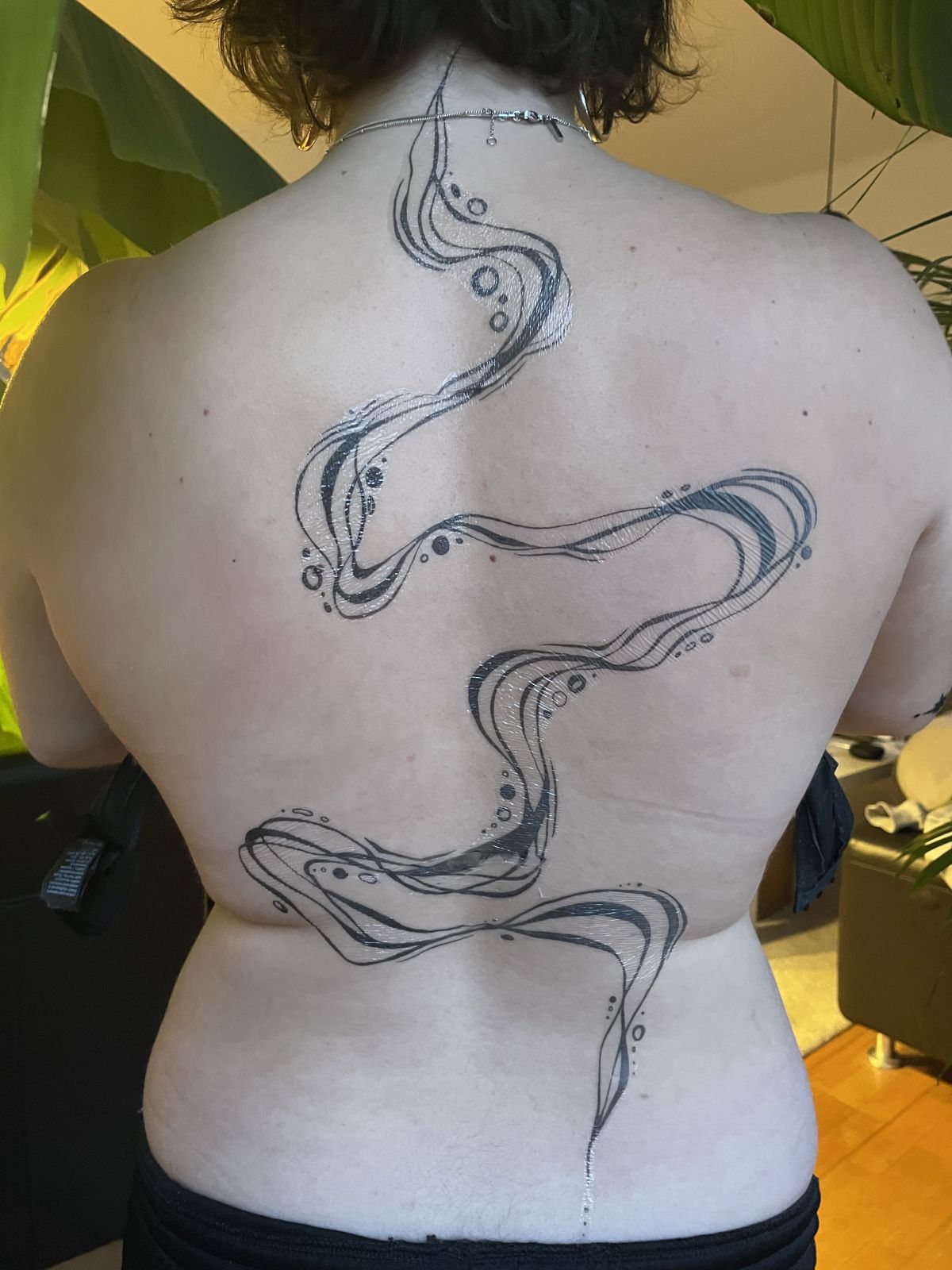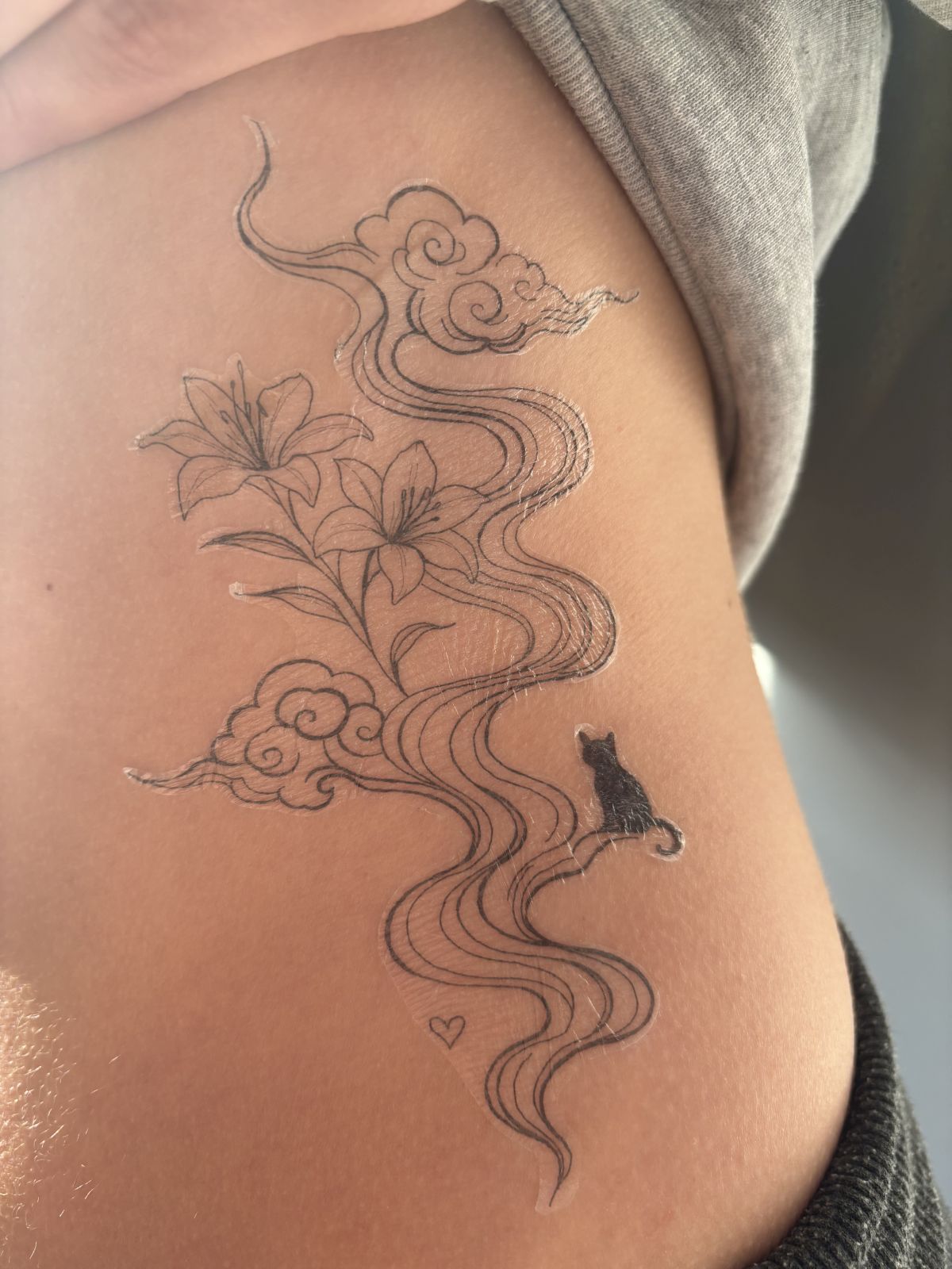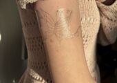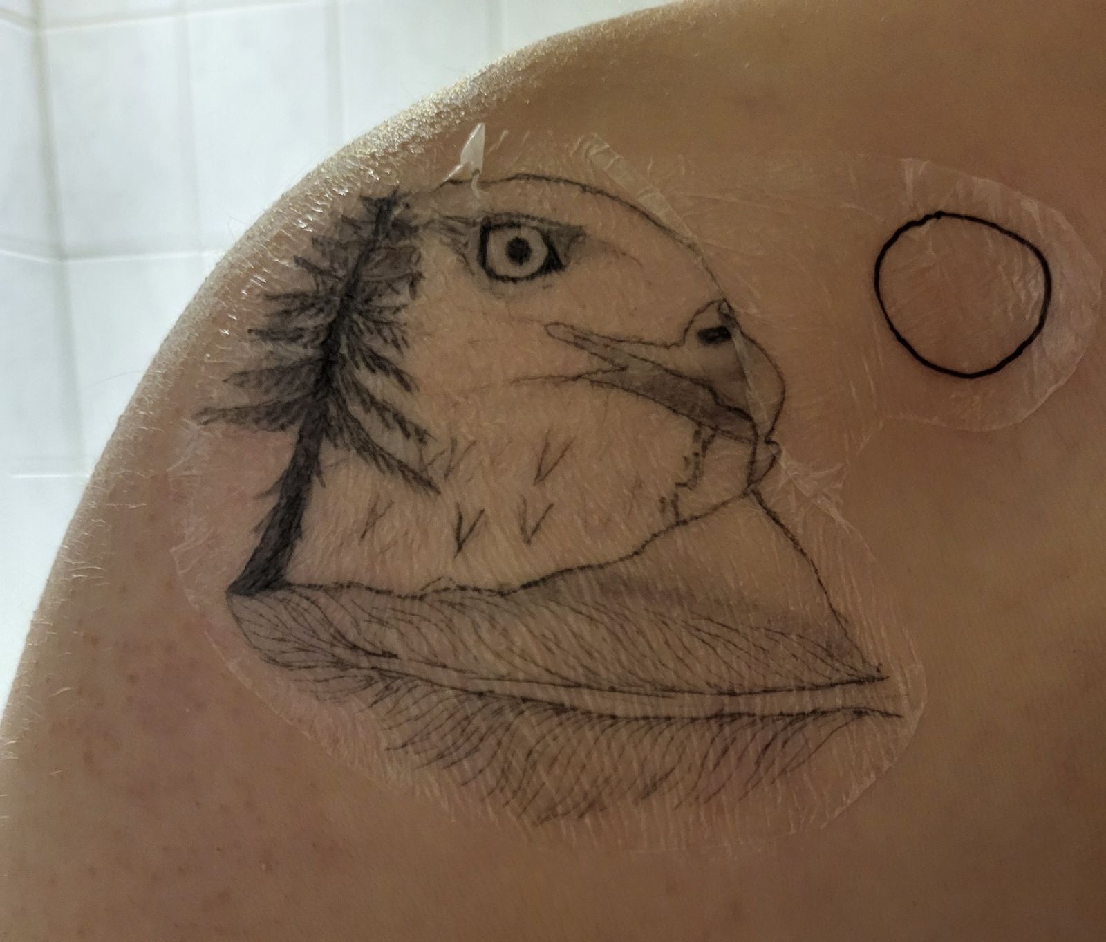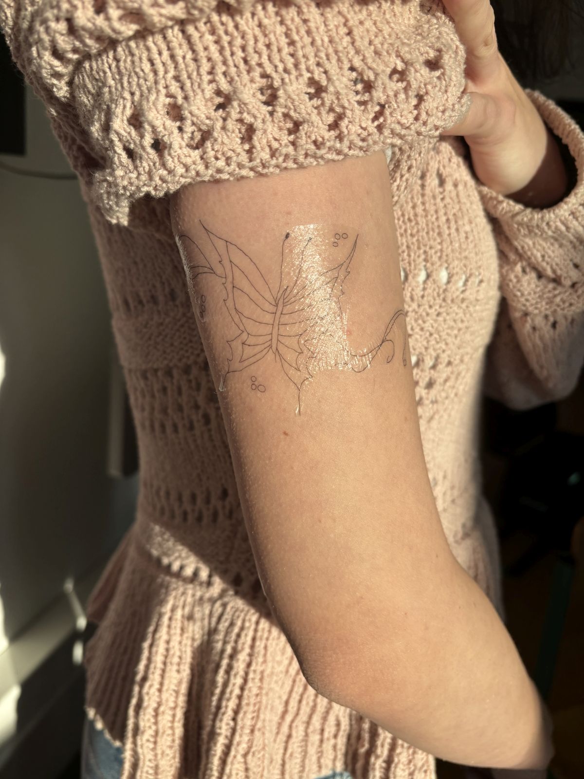 Nach unserem eigenen Designprozess haben wir unsere Tattoos mithilfe einer speziellen Tattoo Folie auf unsere Haut übertragen, um eine Idee zu bekommen, wie unser Tattoo tatsächlich aussehen würde.