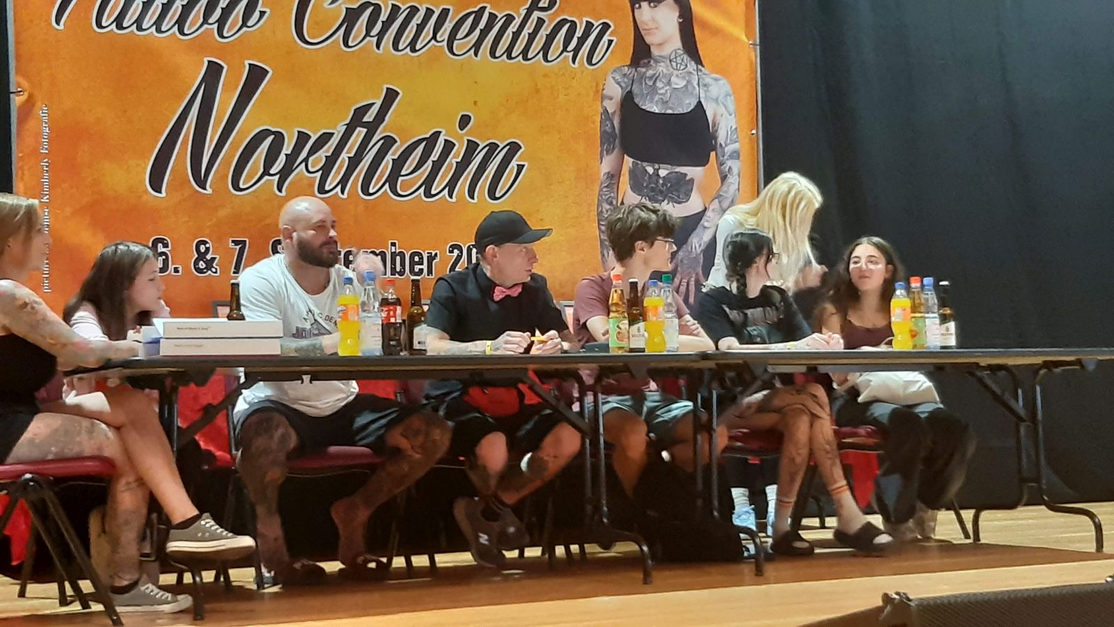 Als Vorbereitung auf eigene Designs haben wir die Tattoo Convention in Nordheim besucht und uns über Tattoodesign und Formen des Tattowierens informiert. Wir haben gelernt, wie Tattoos entworfen werden und gesehen, wie sie gestochen werden. Wir durften in der Jury mitmachen und konnten selber Tatoos auf Bananenschalen stechen. "Es hat uns überrascht, dass vielen Tatoo-Artists keine Ausbildung absolviert haben. Die meisten Tattoo-Artists haben sich das Tätowieren selbst beigebracht und hatten im Vorfeld vor allem künstlerische und zeichnerische Erfahrungen."