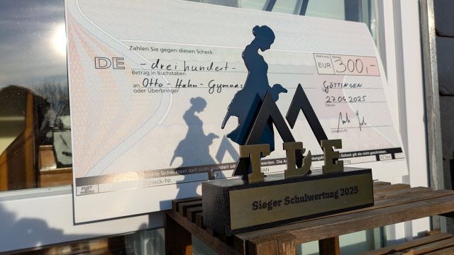 (pre.) Wie bereits vor zwei Jahren hat das OHG auch in diesem Jahr die Schulwertung der Tour d’Energie 2025 gewonnen. Und diesmal mit großem Abstand vor der nächstplatzierten Schule: 50 Schülerinnen und Schüler sowie Lehrkräfte und natürlich auch der weltbeste Hausmeister Herr Döring (wie gewohnt im Kängurukostüm) kamen im geforderten Zeitlimit ins Ziel. Sie verhalfen dem OHG zu einem Siegerpokal und einem Scheck über 300€.