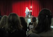 (rau.) Das gab es am OHG in dieser Form noch nie – einen Vorlesetag für die Siebtklässlerinnen und Siebtklässler. Die 7. Klassen waren in den Theaterraum eingeladen, um sich von Lehrerinnen und Lehrern jeweils eine Schulstunde lang vorlesen zu lassen. In einer Stunde war der Theaterraum allerdings belegt, sodass die Klasse 7c in die Bibliothek ausgewichen ist. Das war vertraut, denn vor zwei Jahren war den Klassen schon einmal vorgelesen worden, und zwar in der Bibliothek, wo man es sich so gut auf den Sofas gemütlich machen kann. Aber der Theaterraum als Vorleseort hat durchaus auch seinen Reiz. Auch wenn einige die Sofas vermissten, weil sie im Theaterraum auf Stühlen saßen, schwärmte doch mancher Siebtklässler von dem roten Samtvorhang und der Beleuchtung. (Dank an Frederik und Robin für die Einrichtung der stimmungsvollen Lichteinstellung!) Manche Siebtklässlerin lobte die konzentrierte Stimmung durch die Fokussierung auf die Bühne. Mehrfach wurde geäußert, dass auch die nächsten 7. Klassen einen solchen Tag bekommen sollten. Vielleicht lässt sich das einrichten…